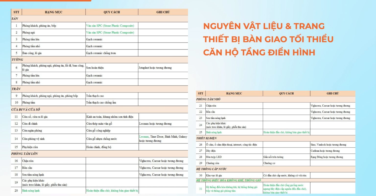 DANH MỤC BÀN GIAO DỰ ÁN HAPPYHOME TRÀNG CÁT